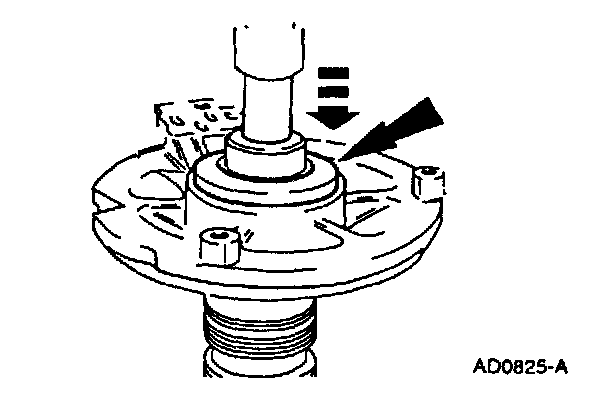 1. If removed, install a new driven sprocket bearing. Using an arbor press, stator and Driven Sprocket Bearing Replacer, and Drive Handle, install a new driven sprocket bearing.