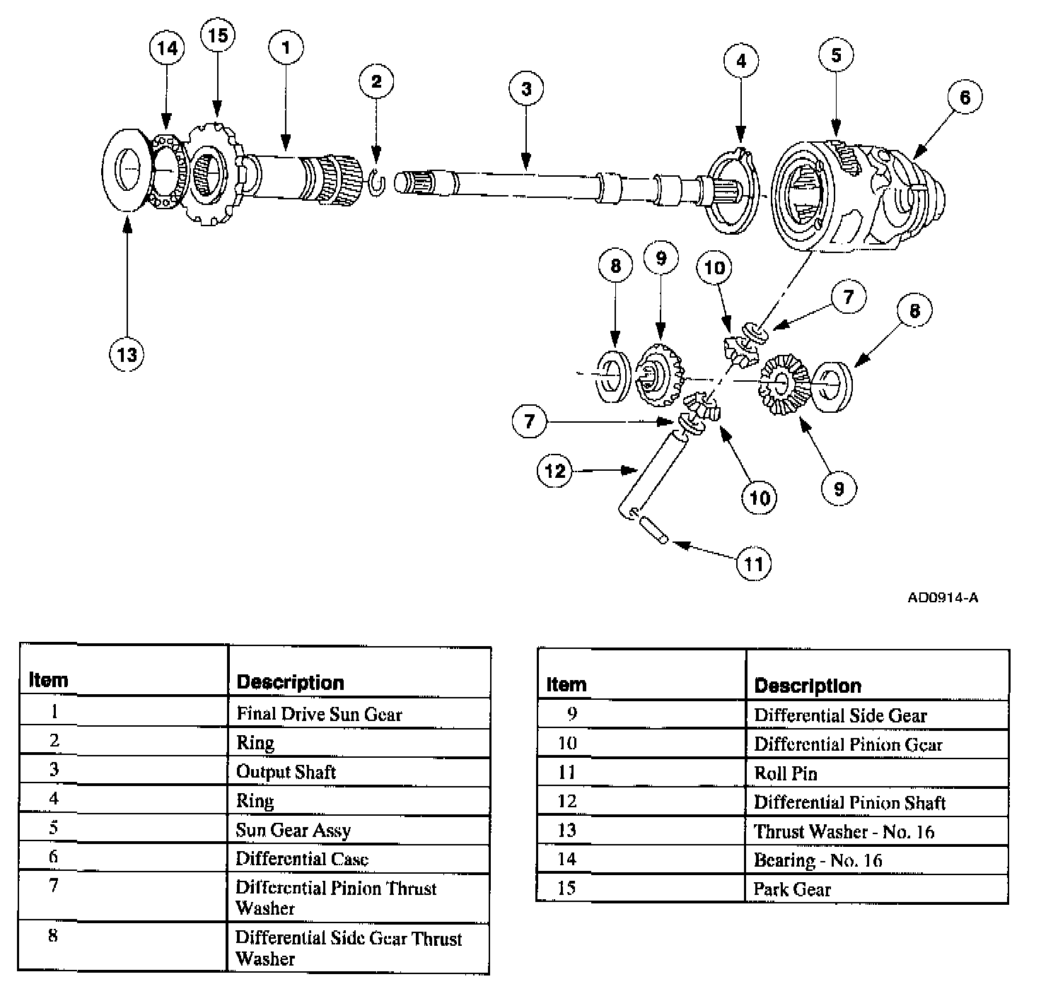 1. Remove the No. 16 final drive gear front thrust bearing.