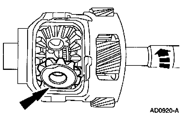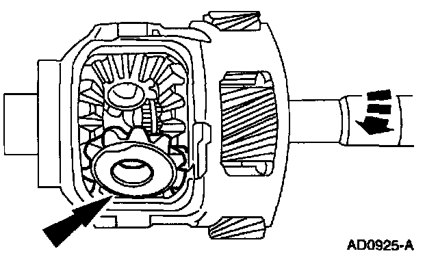 1 Install the differential side gear and differential side gear thrust washer.
