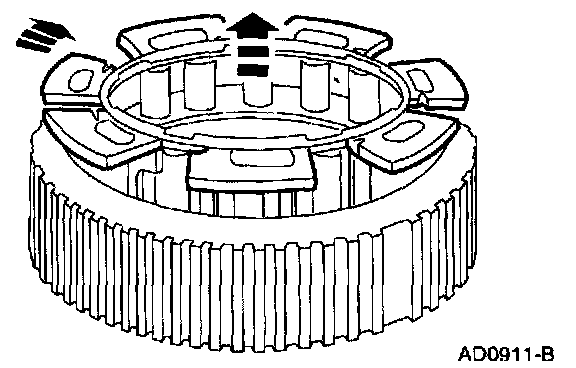 Install the low-intermediate one-way clutch roller and cage. Rotate counterclockwise to lock in place.