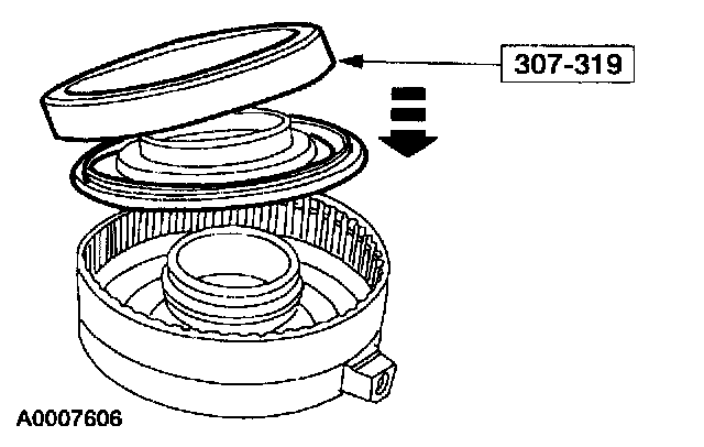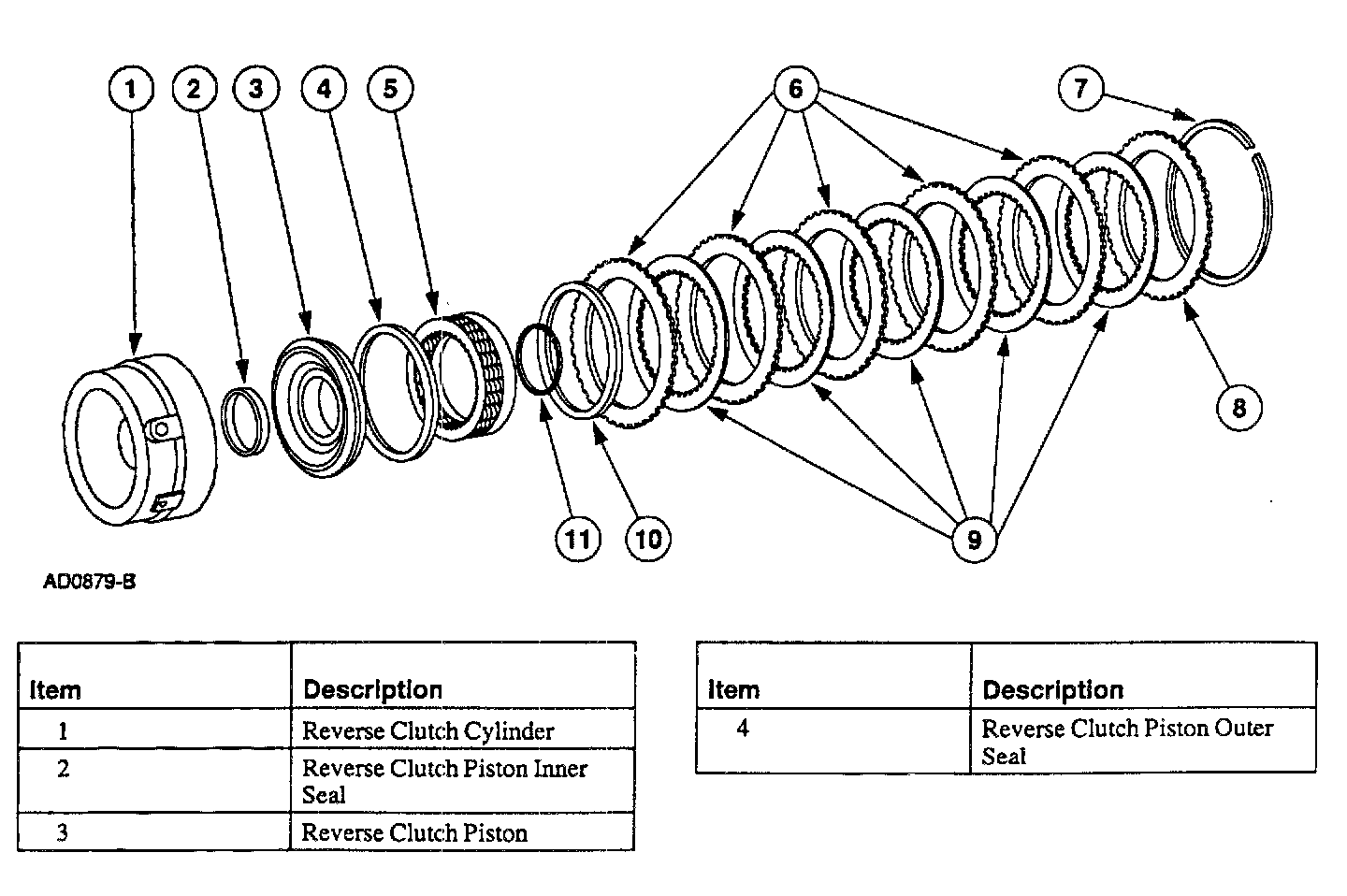 3. Using the reverse clutch piston seal protector install the reverse clutch piston. Install the reverse clutch piston into the reverse clutch piston seal protector and install it into the reverse clutch cylinder.