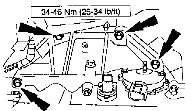 1. Install the rear engine support bracket and bolts.
