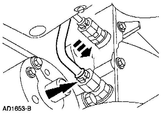 ^ With the manual lever in the overdrive position, install the nut.