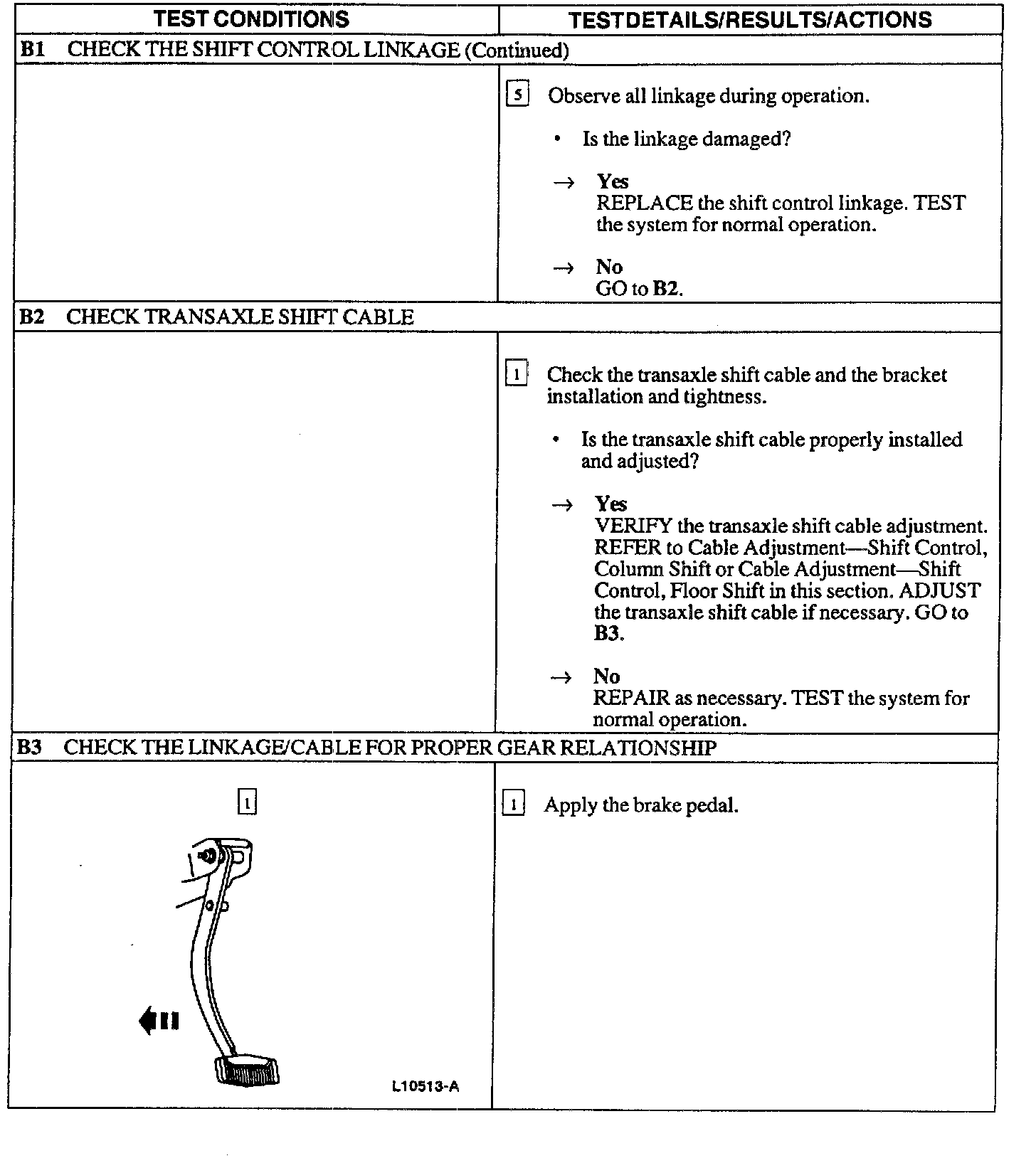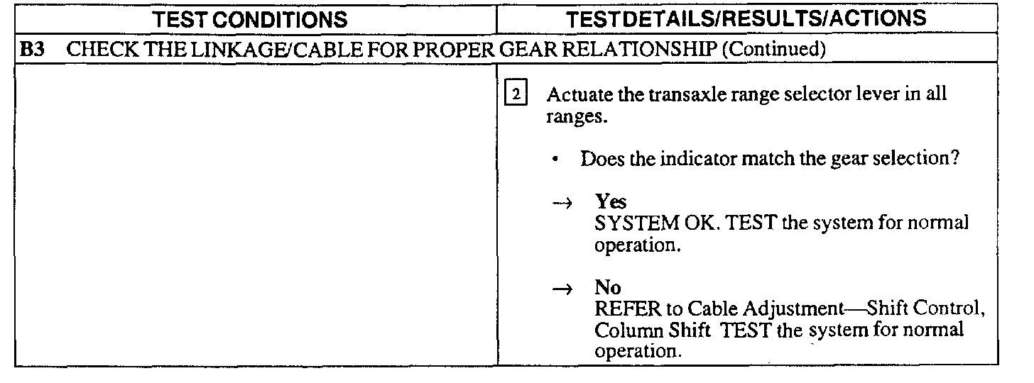 PINPOINT TEST B: SHIFT CONTROL LINKAGE OUT OF PROPER GEAR RELATIONSHIP