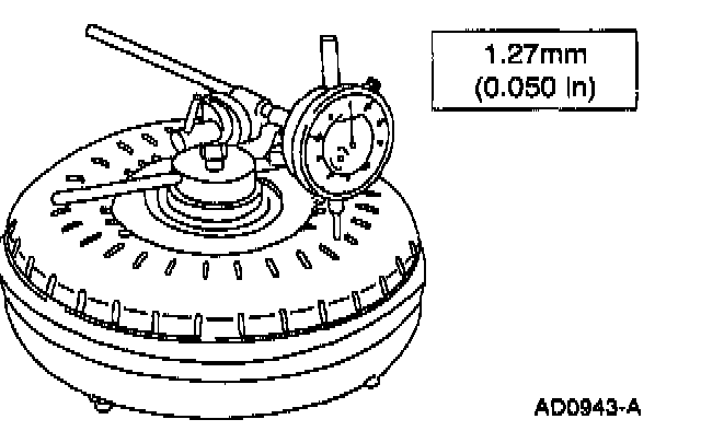 4. NOTE: If the indicator reading is above specification, replace the torque converter.