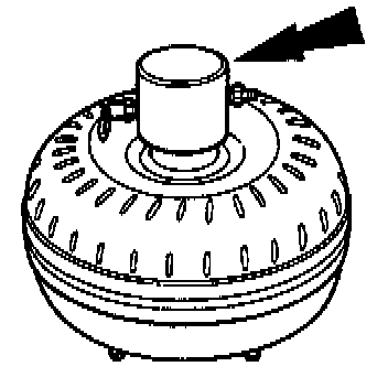 Position the torque converter with installed Torque Converter Leak Check tool and gasket into an arbor press. Secure the press. Apply enough force from the press to seal the tool into the torque converter.
