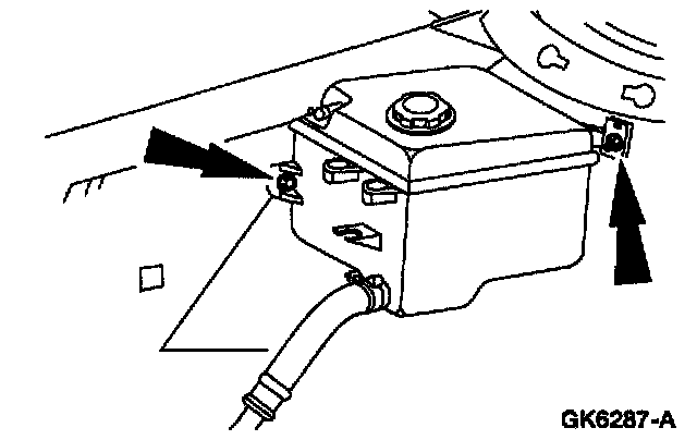 2. Remove the bolt and nut and position the coolant reservoir aside.