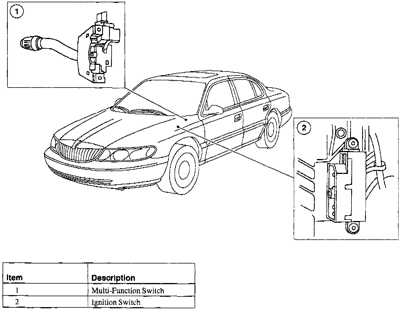 The integrated multi-function switch is mounted to the LH side of the steering column and controls the turn signal, headlamp dimmer/flash-to-pass, windshield wiper/washer, and hazard warning.