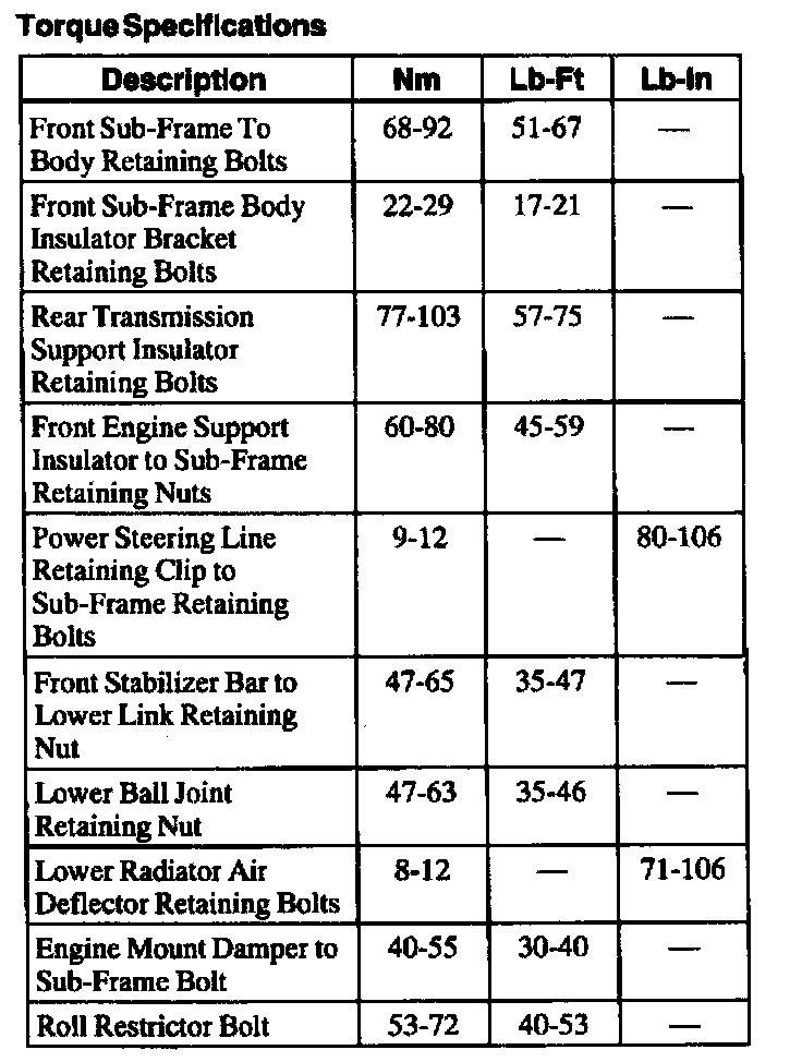 Torque Specifications: