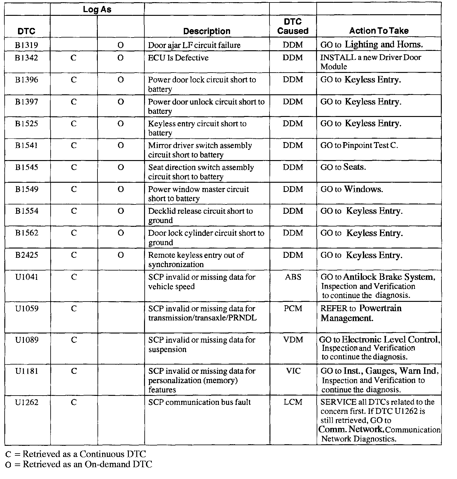 Driver Door Module (DDM) Diagnostic Trouble Code (DTC) Index