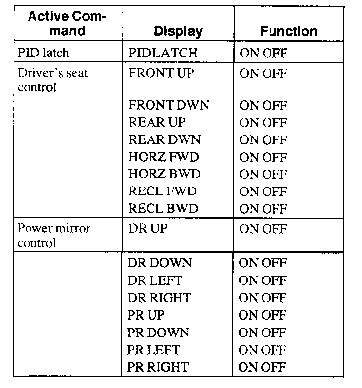 Driver Seat Module (DSM) Active Command Index