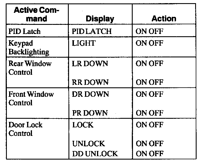 Driver Door Module (DDM) Active Command Index
