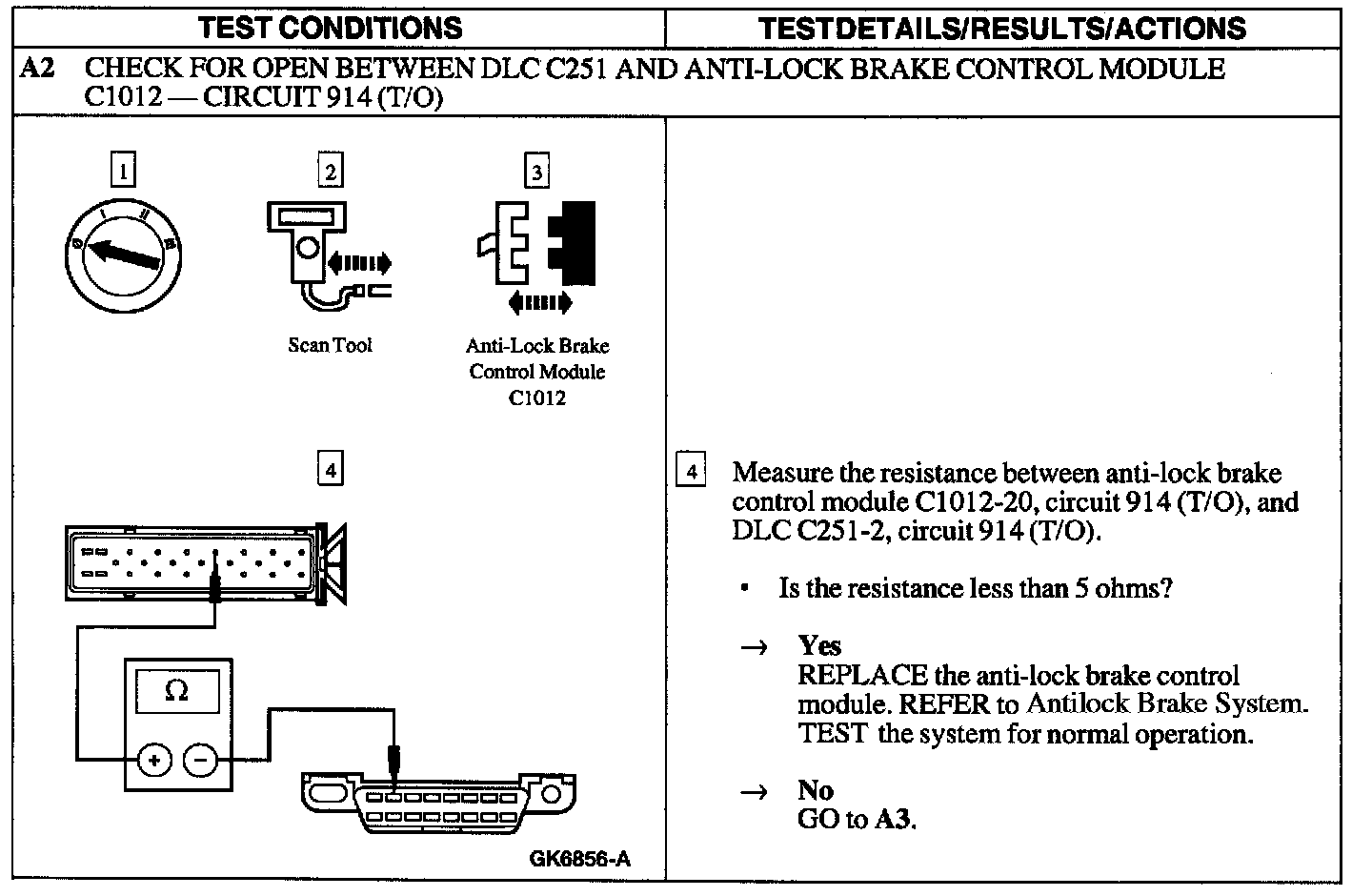 Test A: ABS Control Module Does Not Respond to the Scan Tool