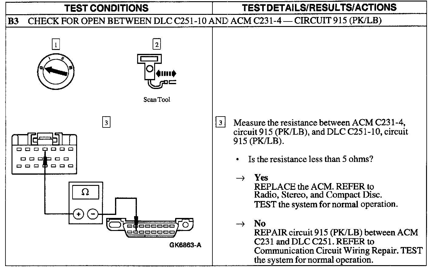 Test B: ACM Module Does Not Respond to Scan Tool