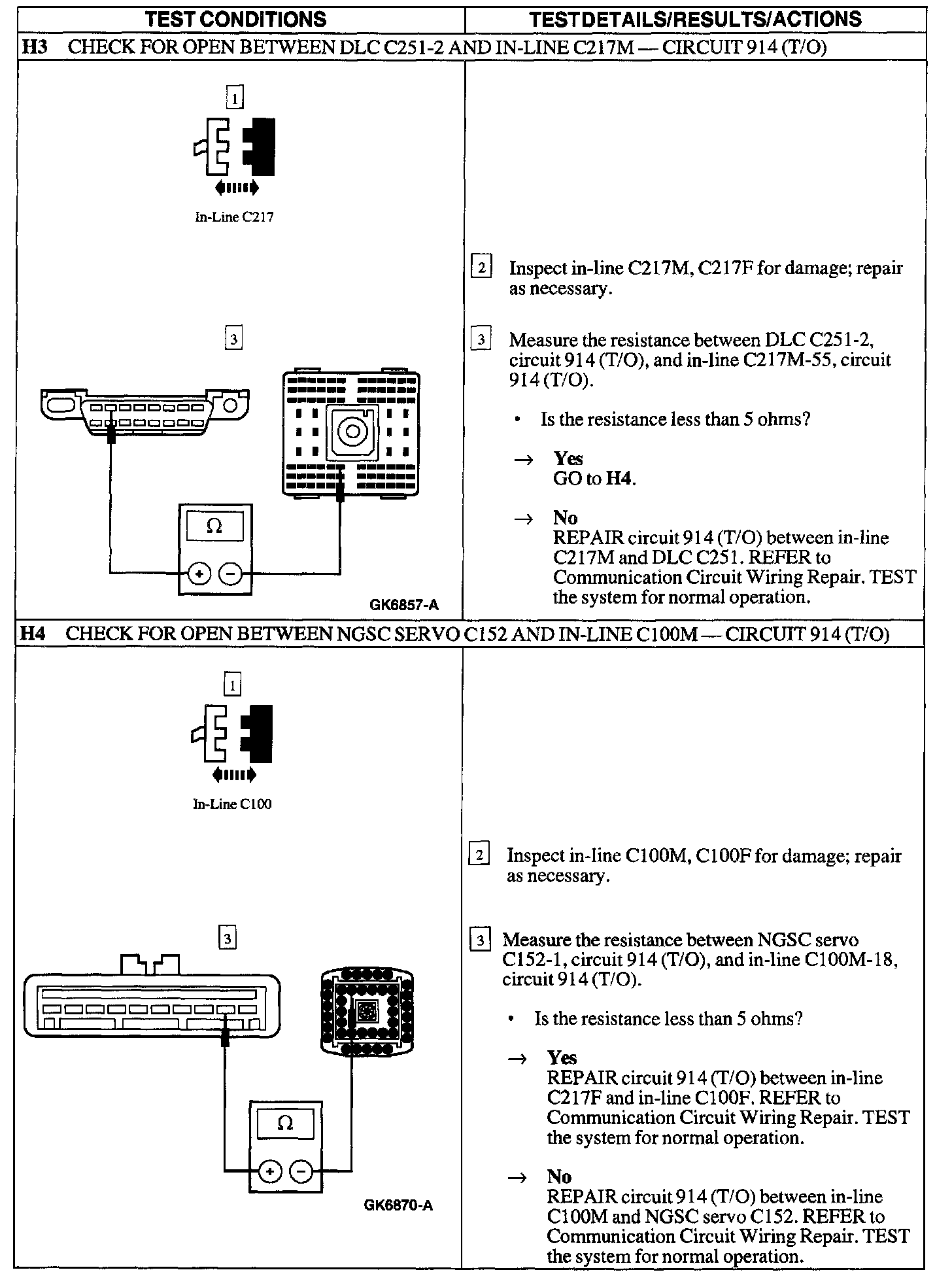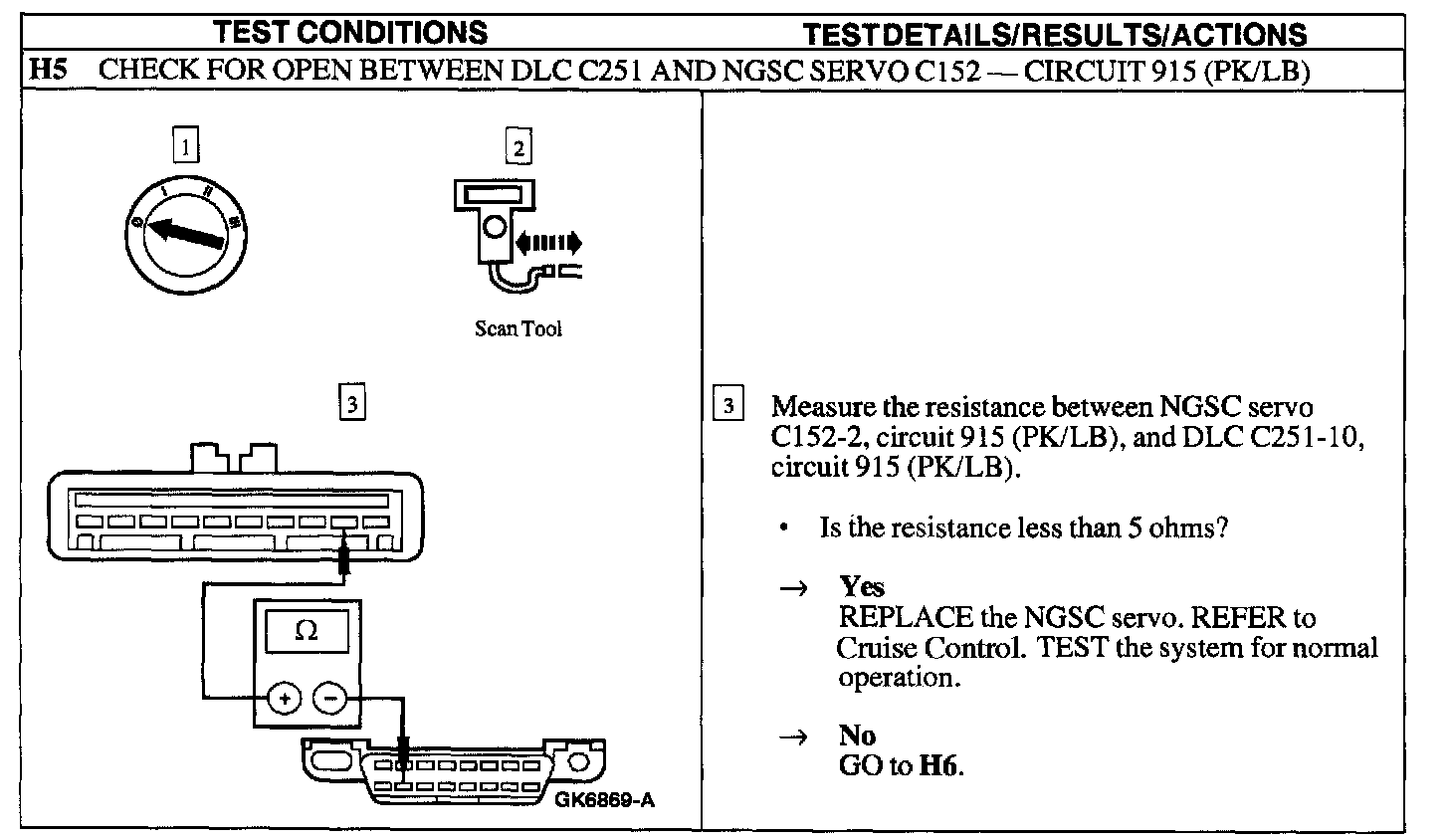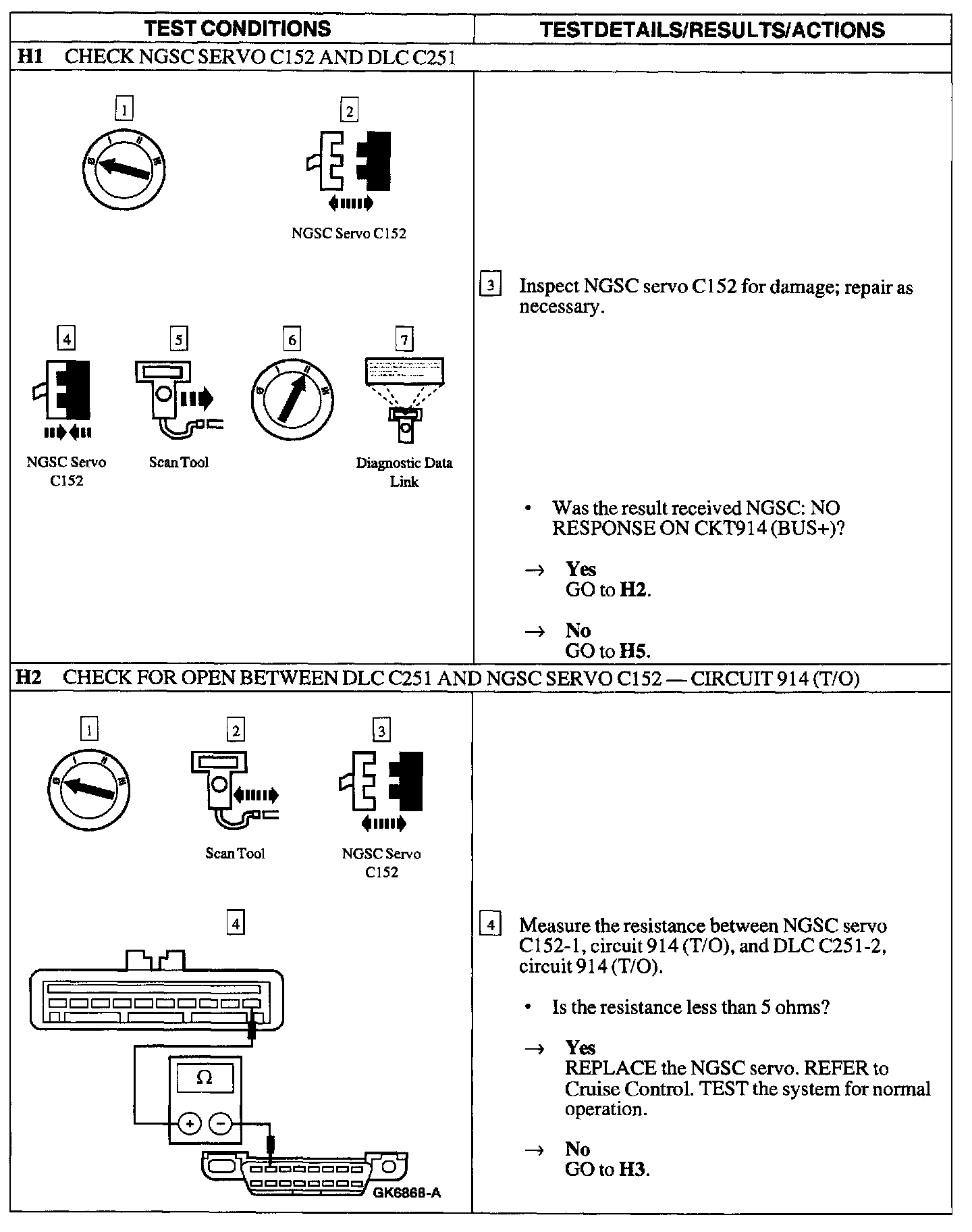 Test H: NGSC Servo Does Not Respond To The Diagnostic Tool