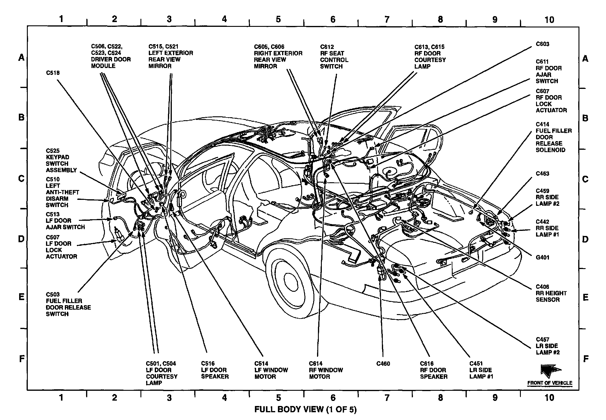 Power Door Lock Control Module: Locations