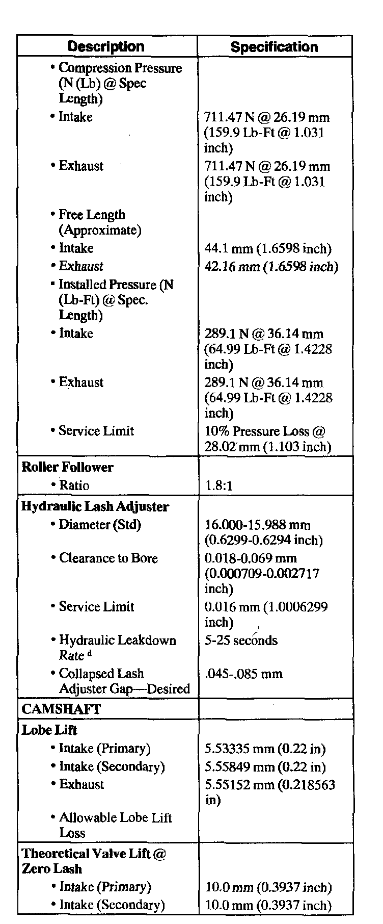 d Time required for plunger to leak down 1.6 mm of travel with 222 N force and leak down fluid in tappet.