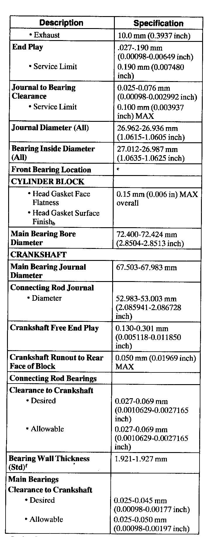 e Distance front edge of bearing is installed below front face of cylinder block.