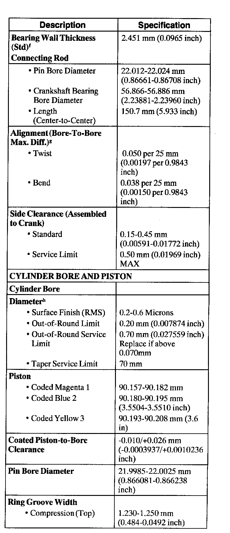 g Pin bore and crank bearing bore must be parallel and in same vertical plane within the specified total difference when measured at the ends of a 203 mm bar, 101.5 mm on each side of rod centerline.