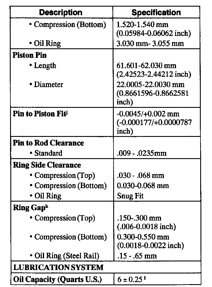 j Piston pin outer diameter is larger than piston pin bore, providing a possible interference fit.