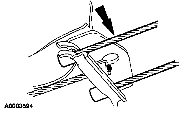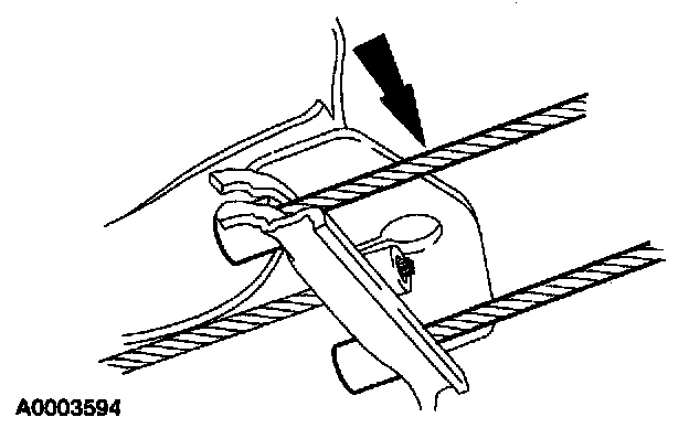 14. Disconnect the two parking brake cables from the junction bracket located to the rear of the fuel tank.