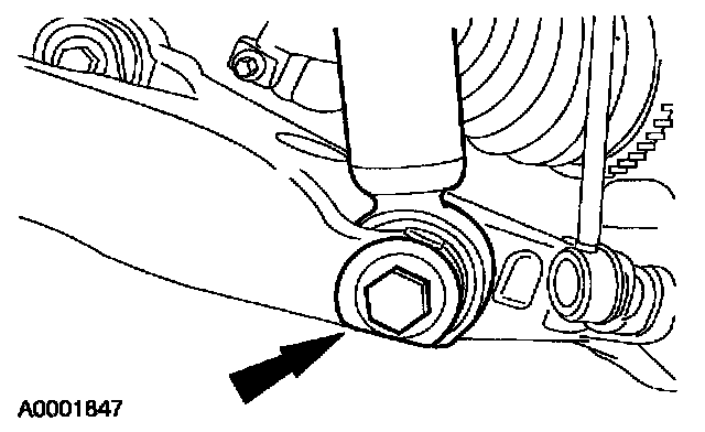 6. Install the two new lower rear shock mount bolts.