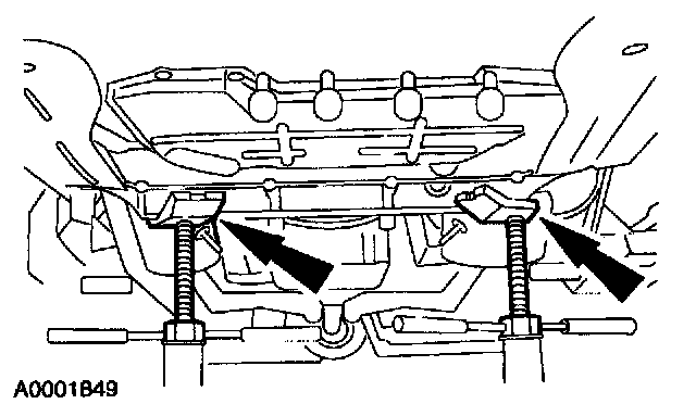 13. Disconnect the two rear parking brake cables.