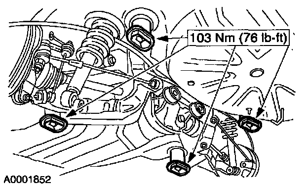 4. Tighten the rear subframe bolts.