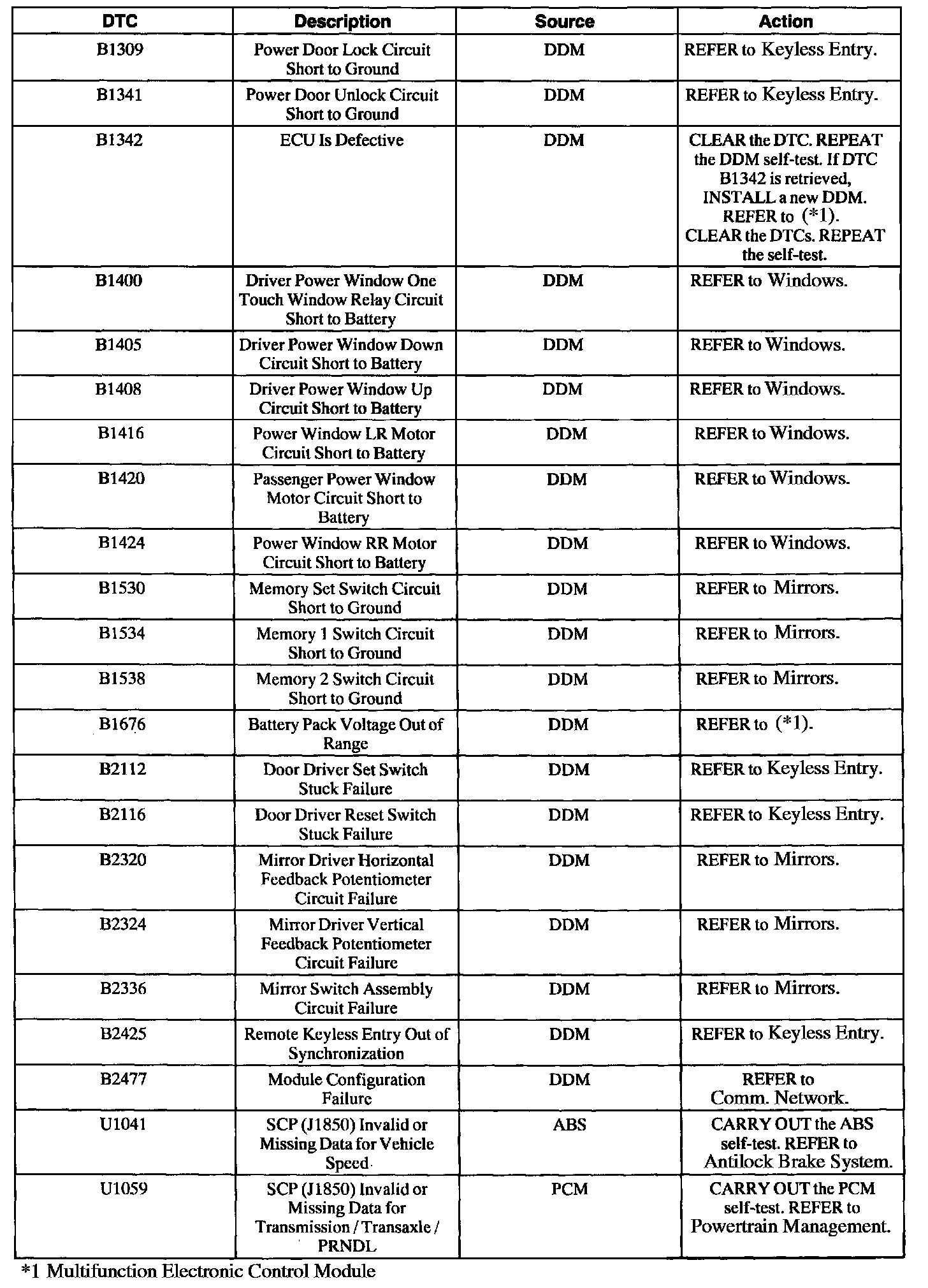 Driver Door Module (DDM) Diagnostic Trouble Code (DTC) Index