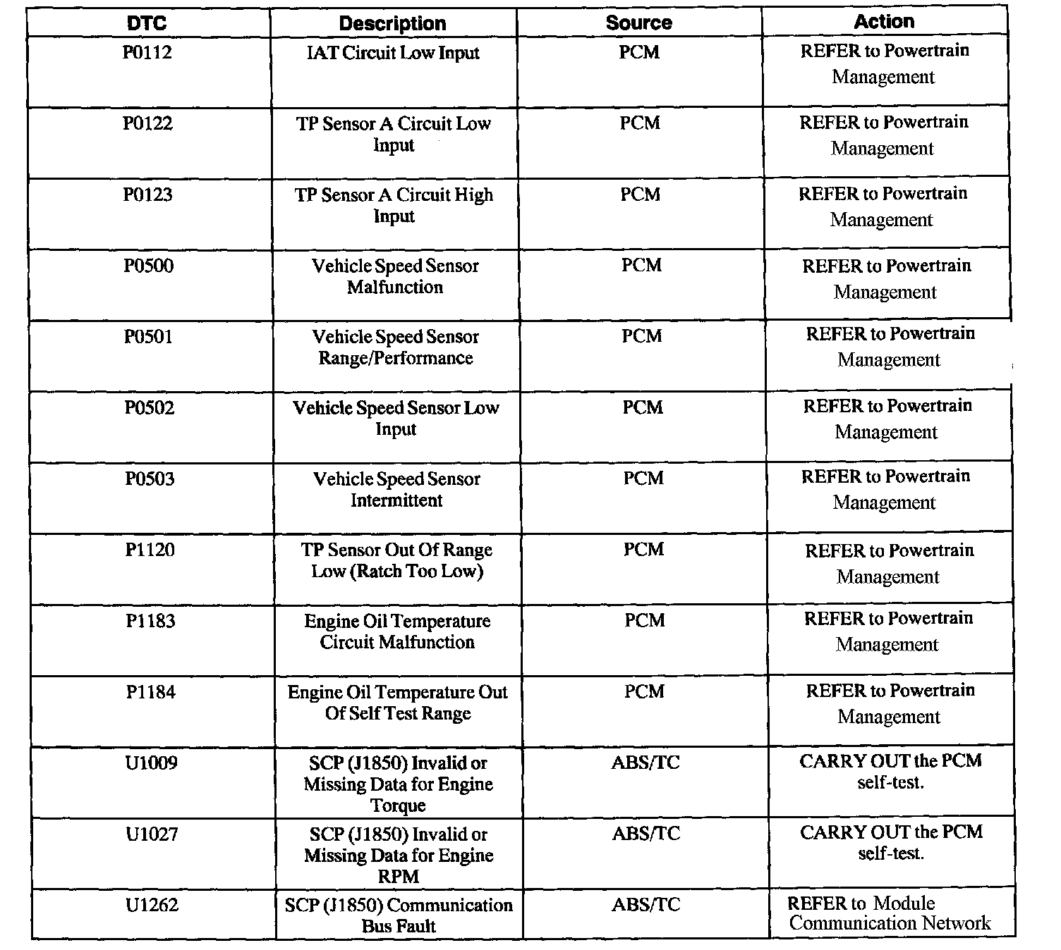 P0112-P1184 / U1009-U1262:
