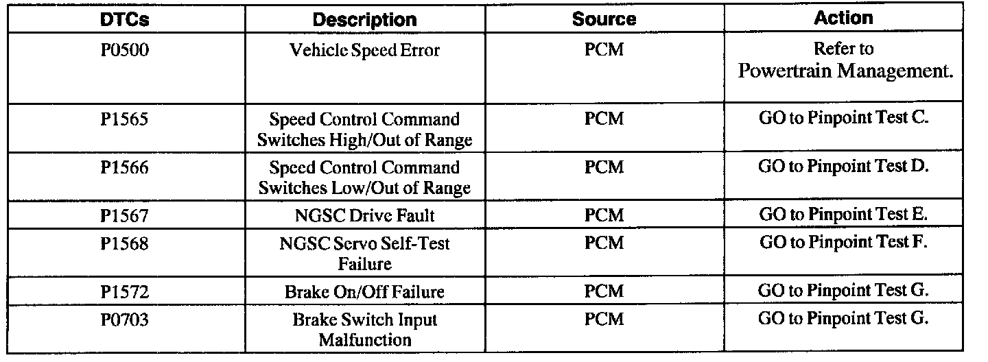 Speed Control Servo Diagnostic Trouble Code (DTC) Index