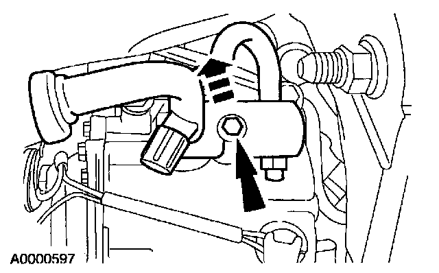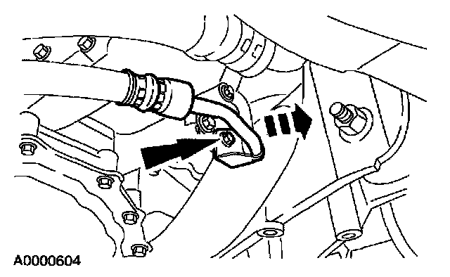 5. Remove the screw and position the power steering hose aside.