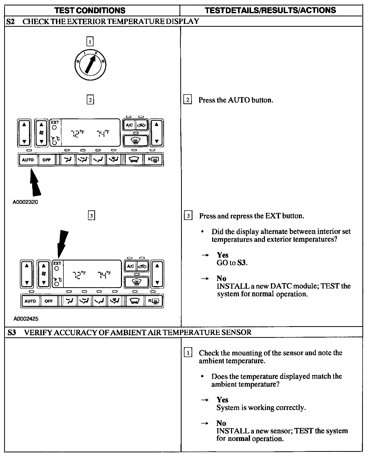 Test S: The Exterior Temperature Display Does Not Function Correctly