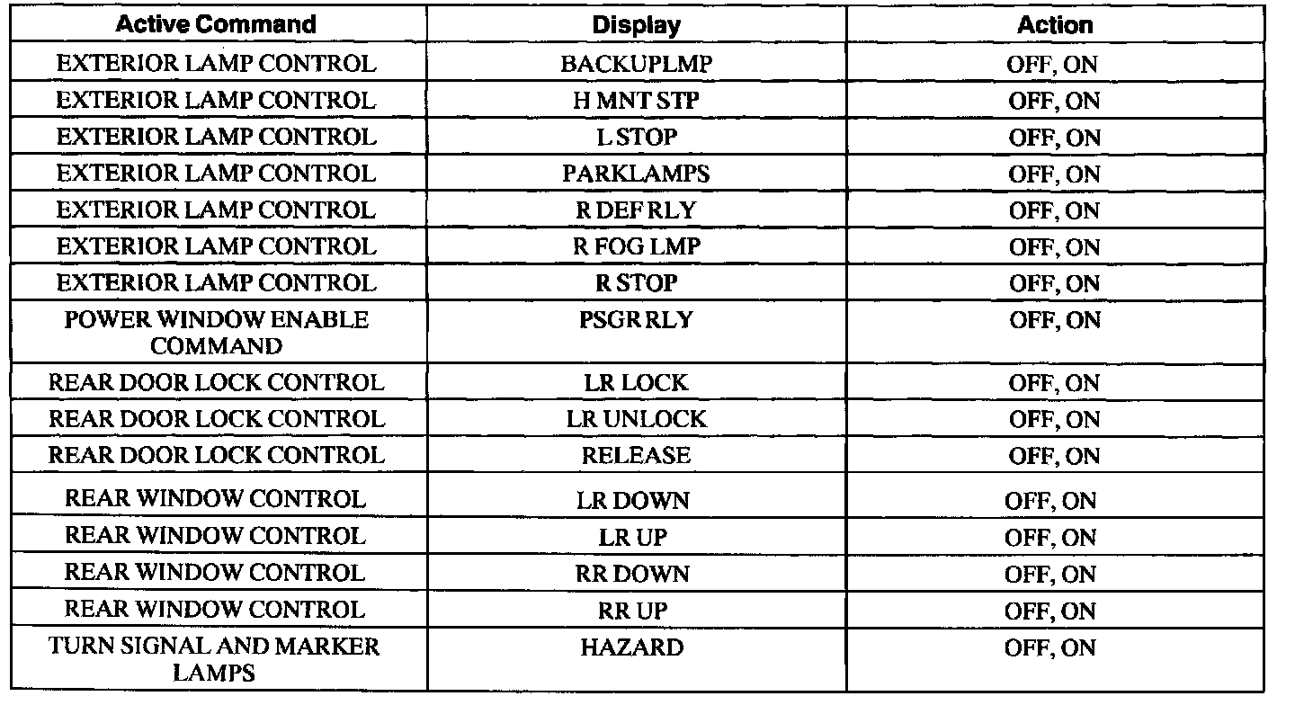 Rear Electronic Module Active Command Index