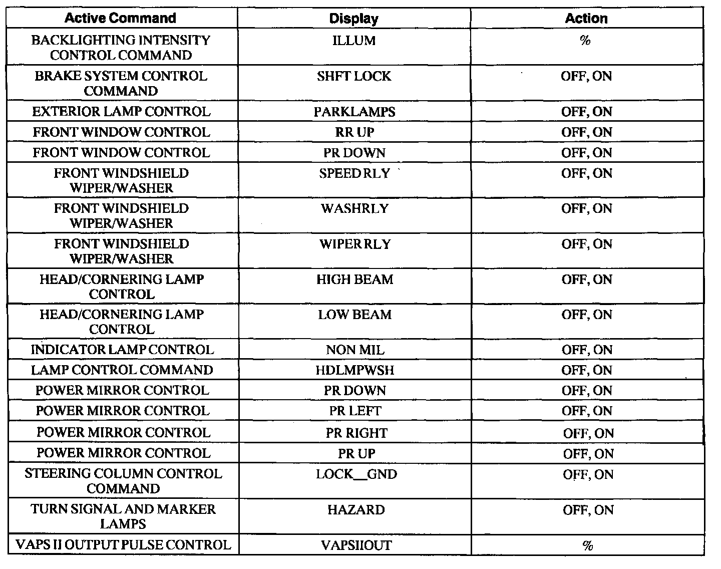 Front Electronic Module Active Command Index