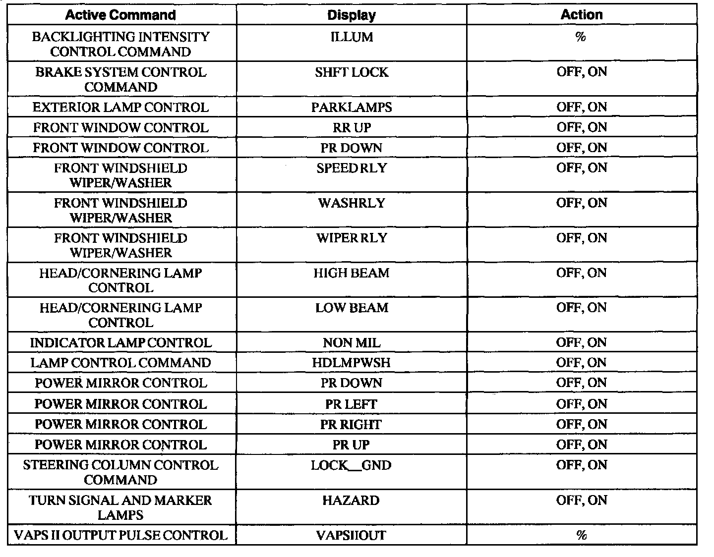 Front Electronic Module Active Command Index