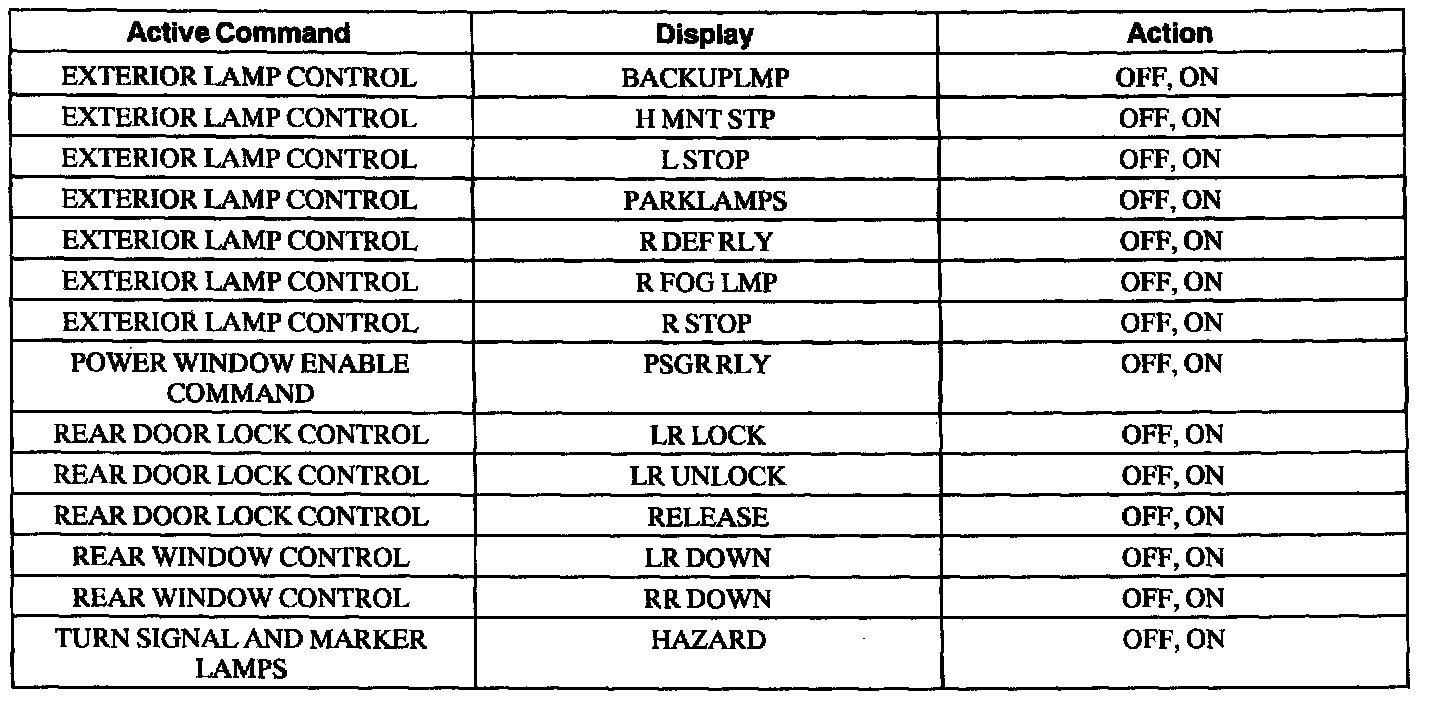 Rear Electronic Module (FEM) Active Command Index