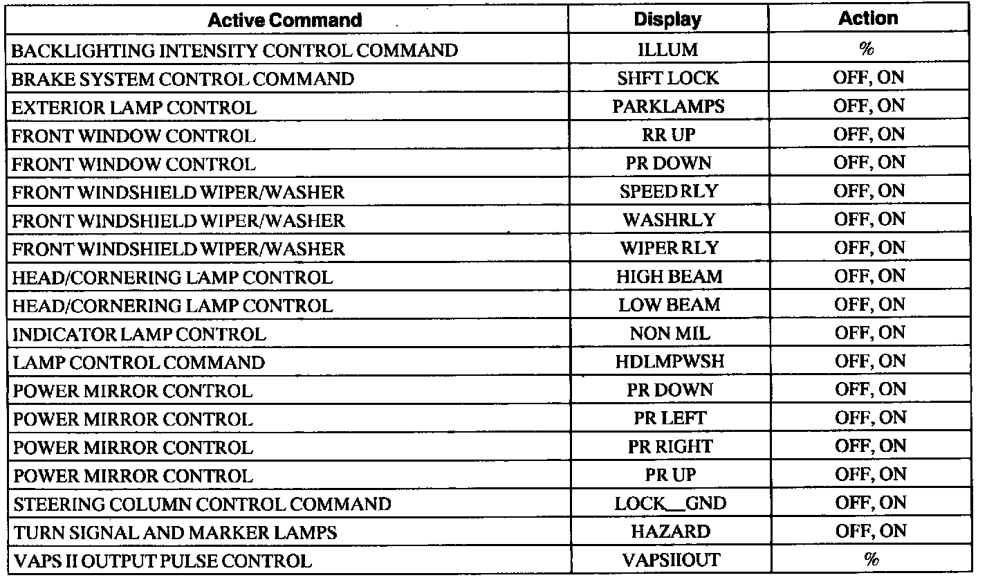 Front Electronic Module Active Command Index