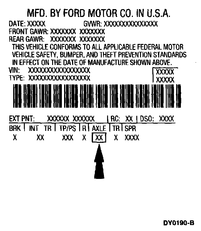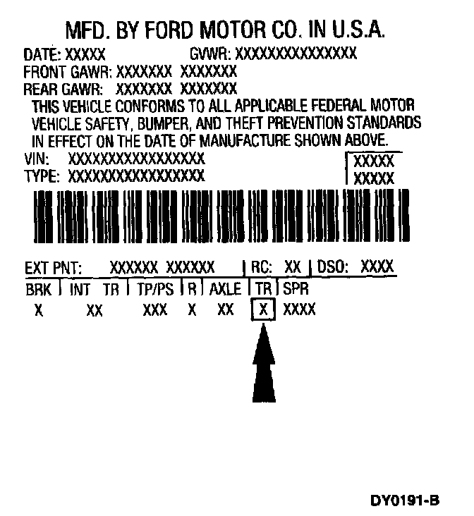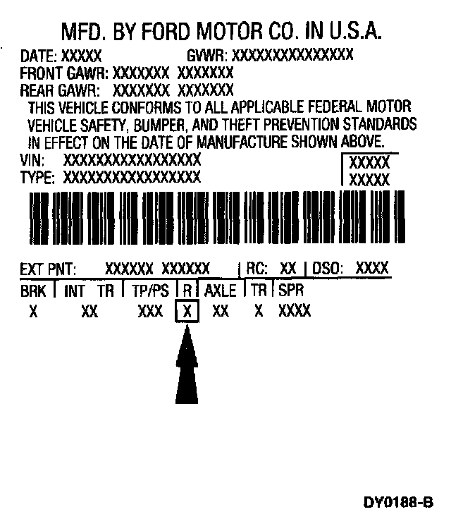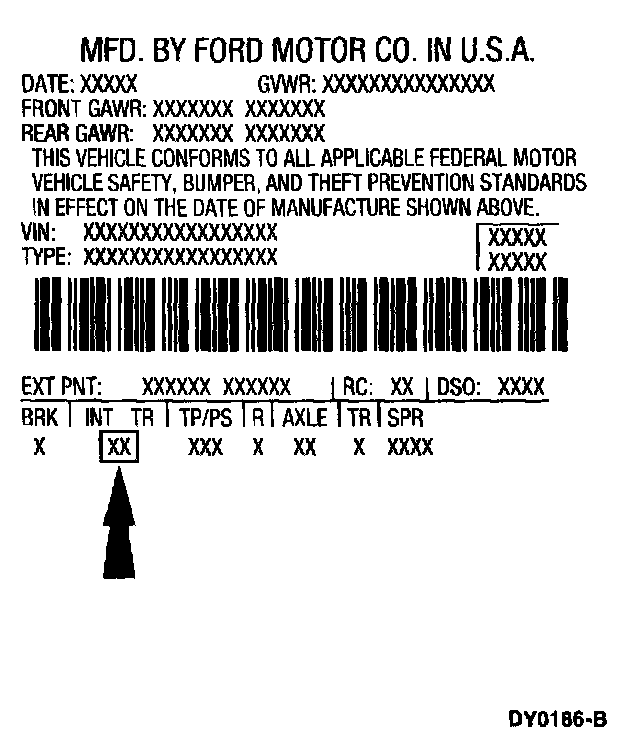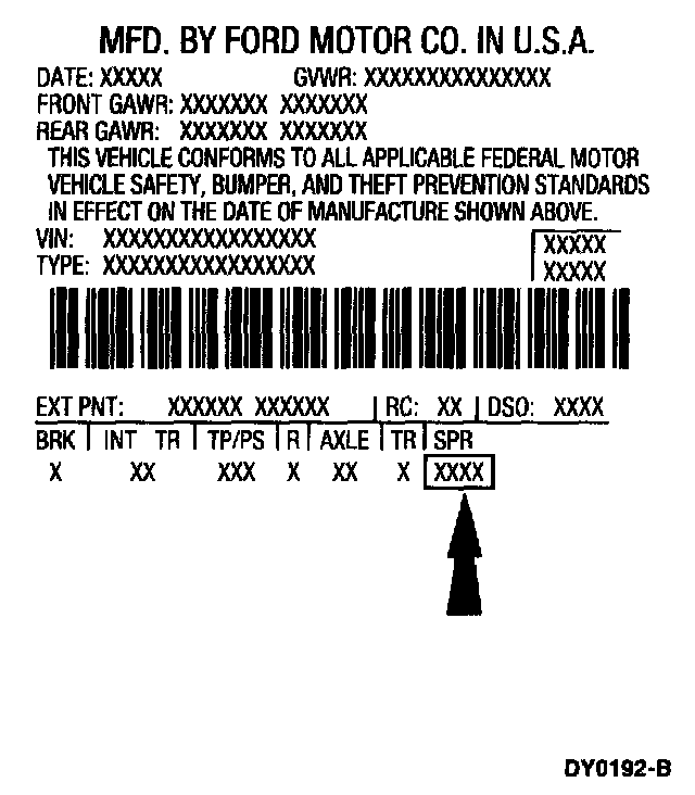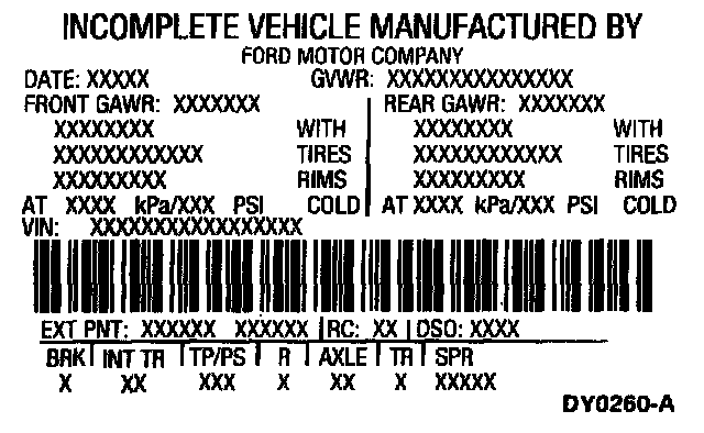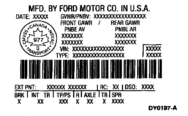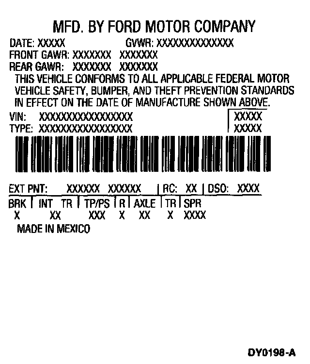 The upper portion of the VC label contains the manufacturer name, the month and year of manufacture, the certification statement and the VIN. It also includes gross vehicle weight ratings (GVWR). The VC label is located on the left-hand front doorjamb.
