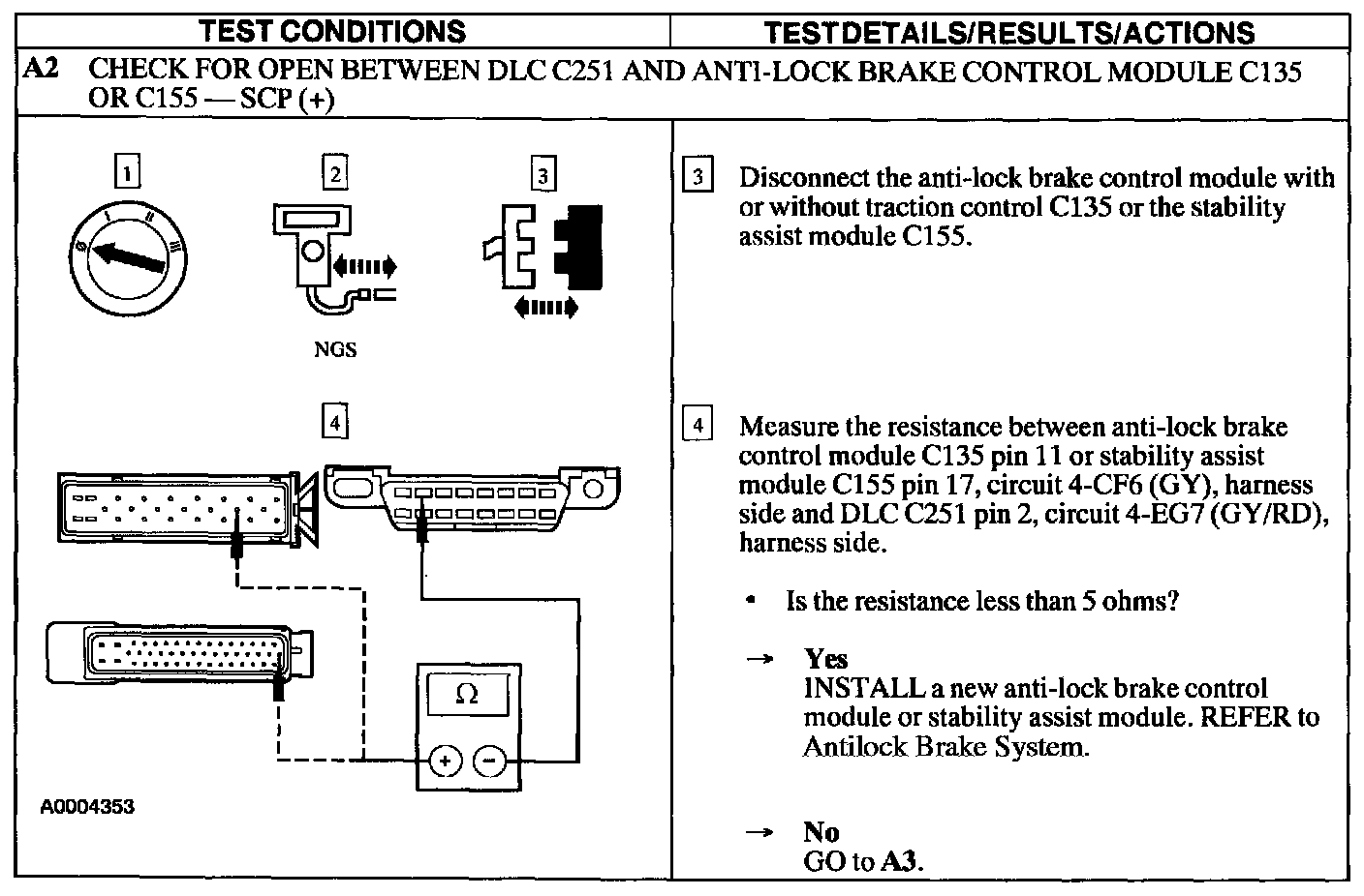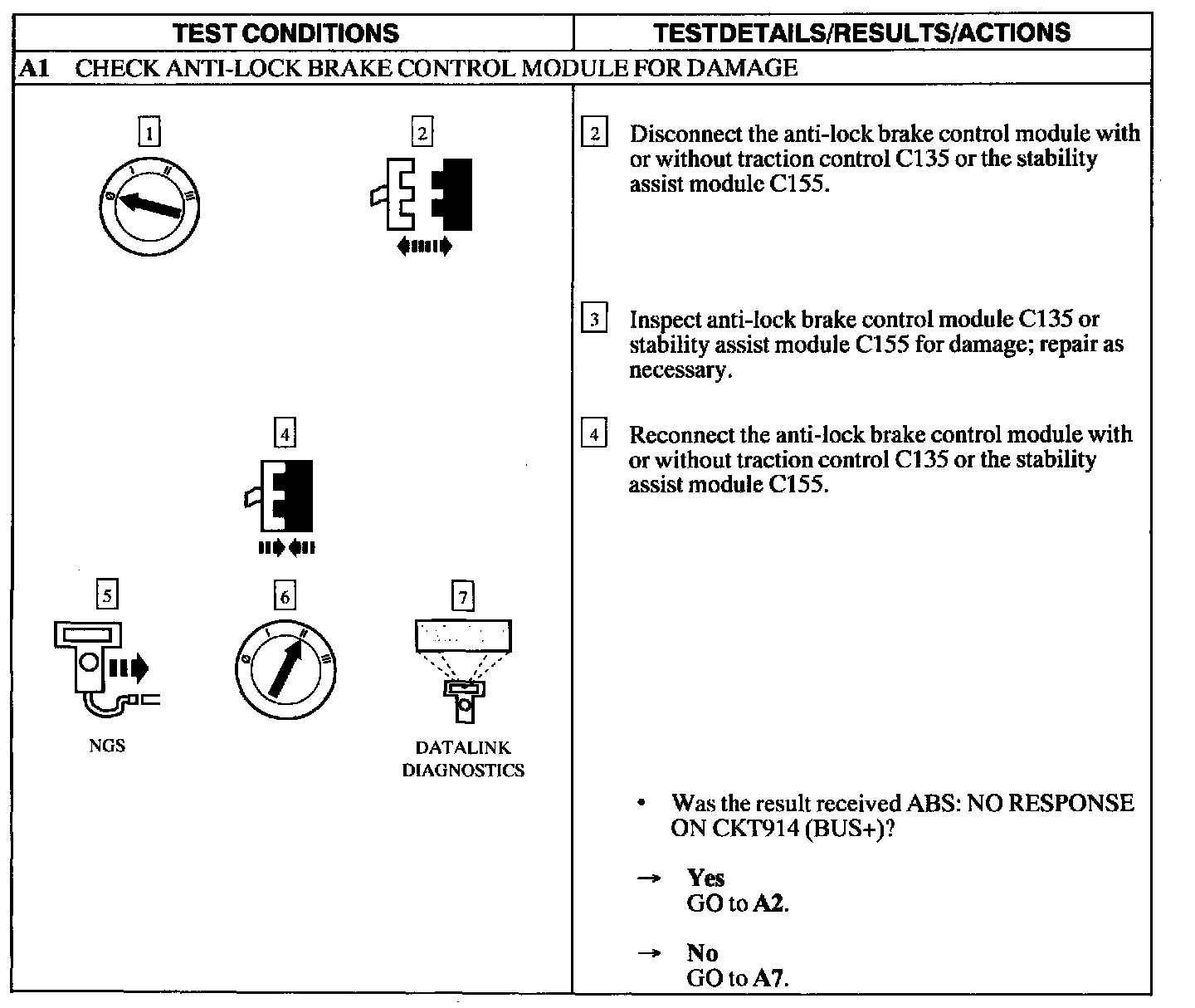 Test A: ABS Control Module Does Not Respond to the Scan Tool