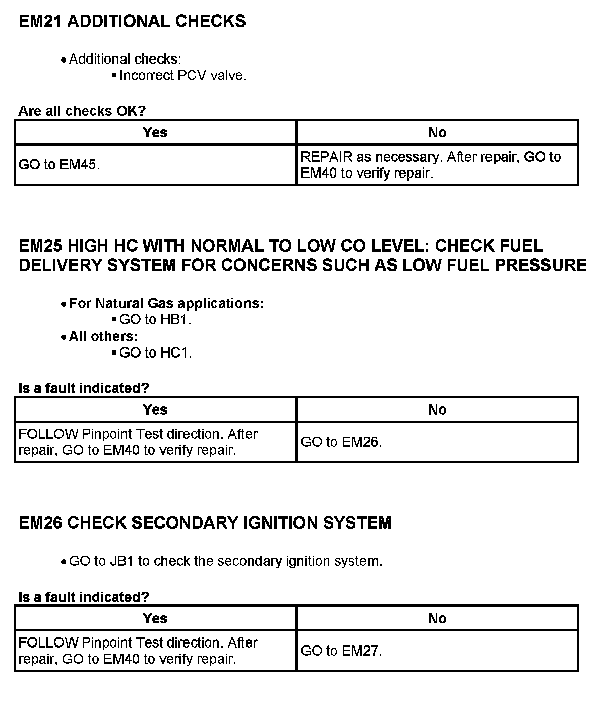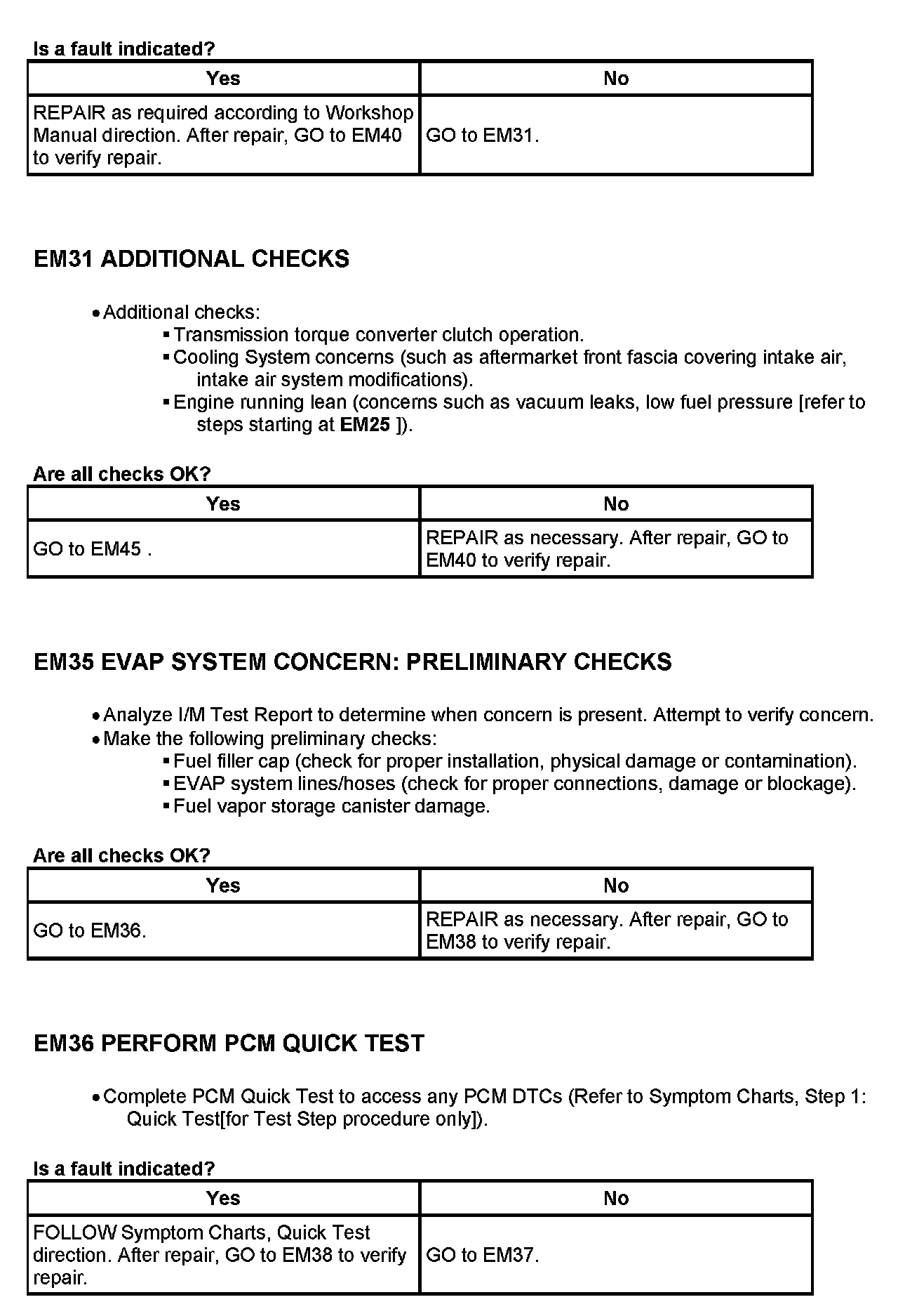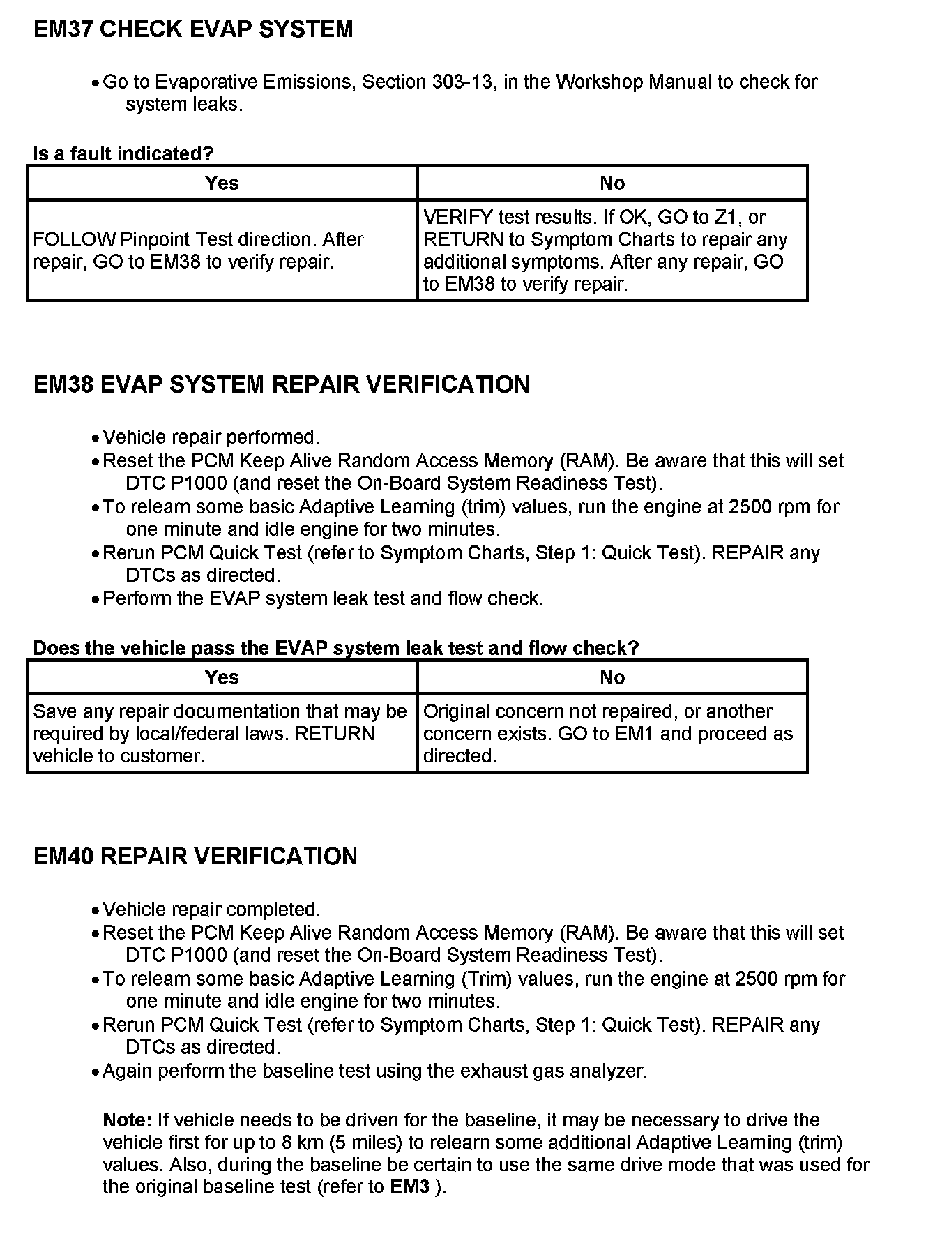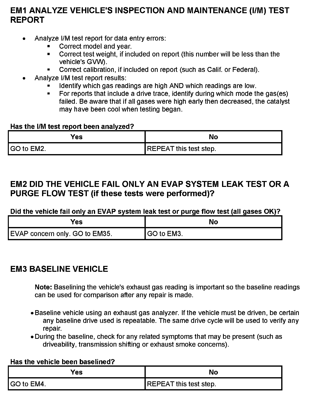 - If any emission components are replaced, perform the following before repeating the I/M Test procedure: