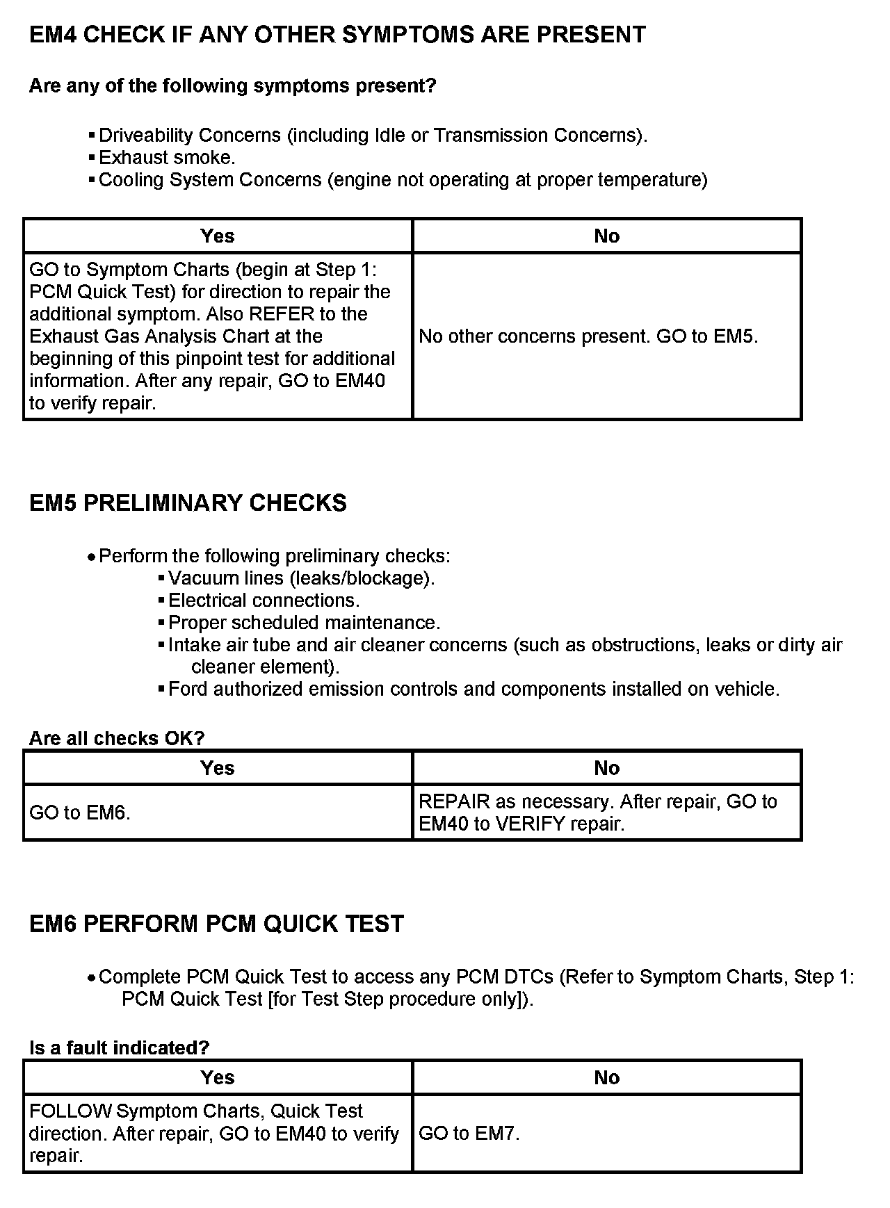 Canada and some states or metropolitan areas in the United States require periodic Emission, or Inspection and Maintenance (I/M) Tests. All Ford products have been designed to pass these tests. If a Ford product fails an I/M Test, it is probable that 1) the engine or catalyst temperature was not warm and stabilized before the test, or 2) the vehicle had idled excessively before the test.