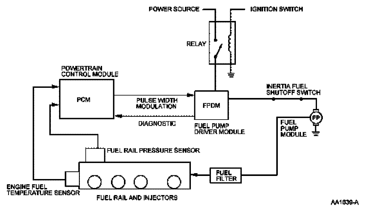 2. The fuel pump logic is defined in the fuel system control strategy and is executed by the PCM.