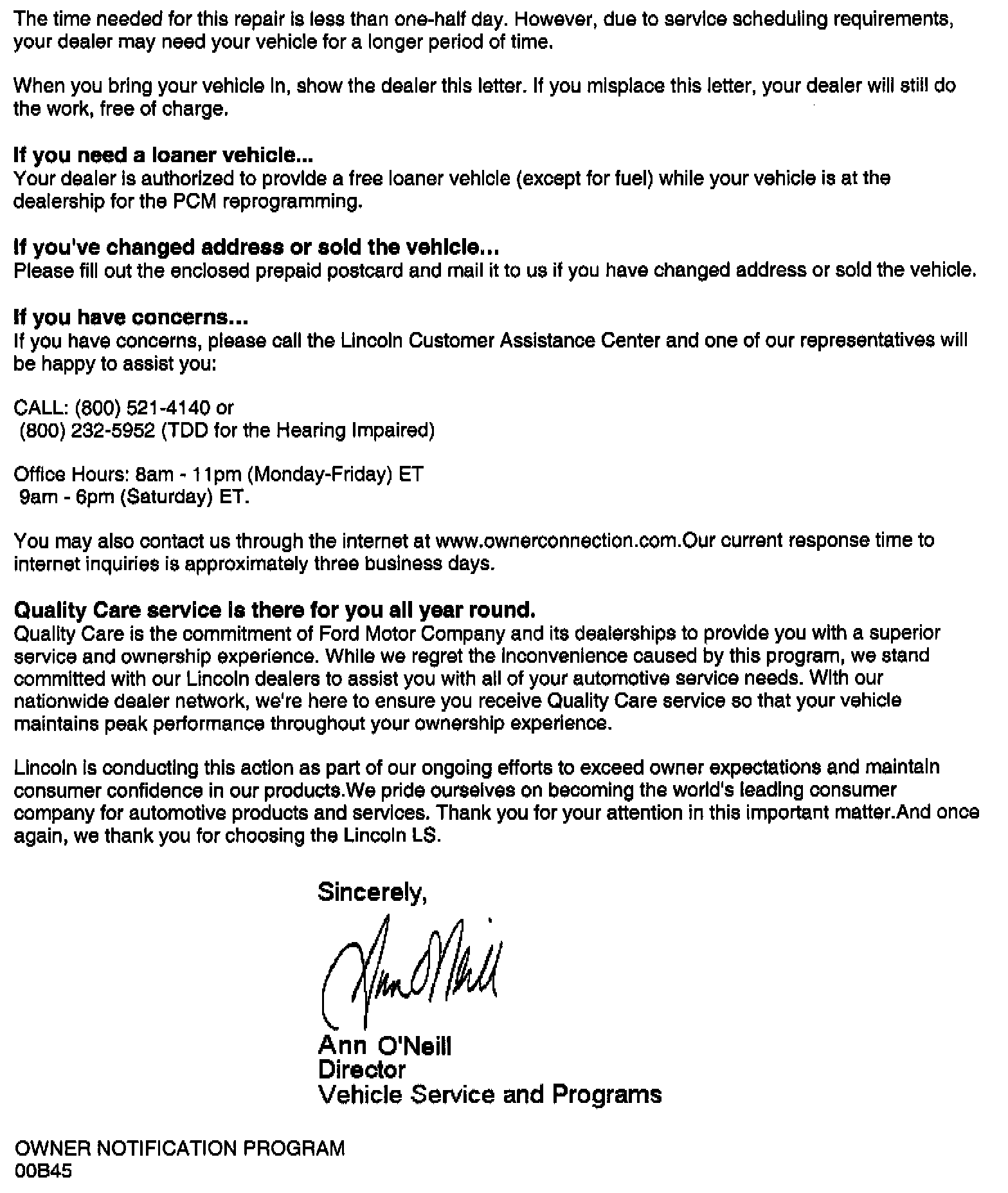 Owner Letter