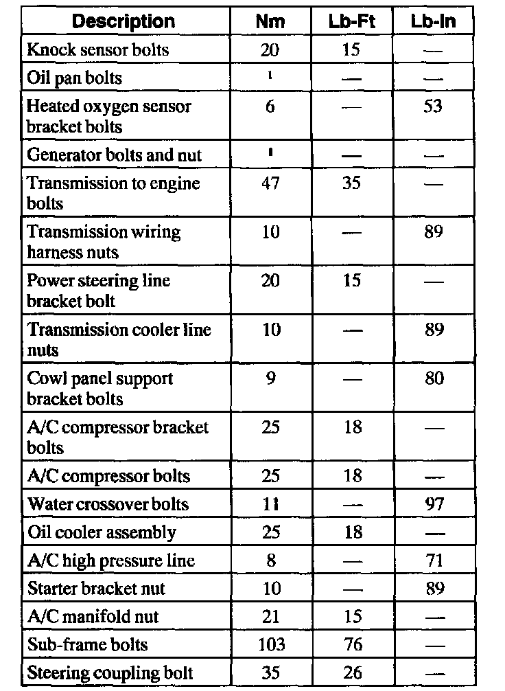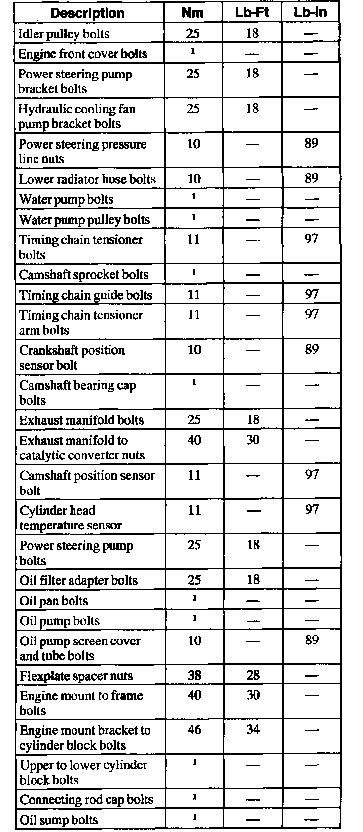 Torque Specifications