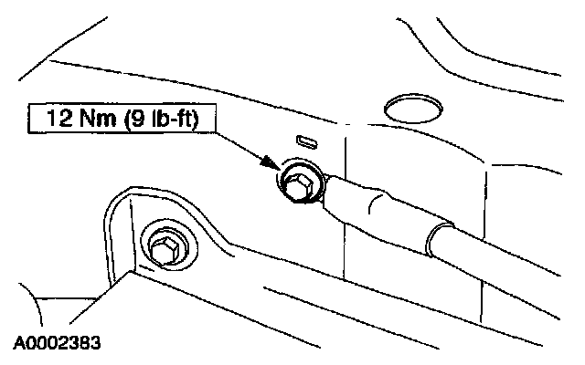 12. In the engine compartment at the dash panel, remove the protective cover and the nut.