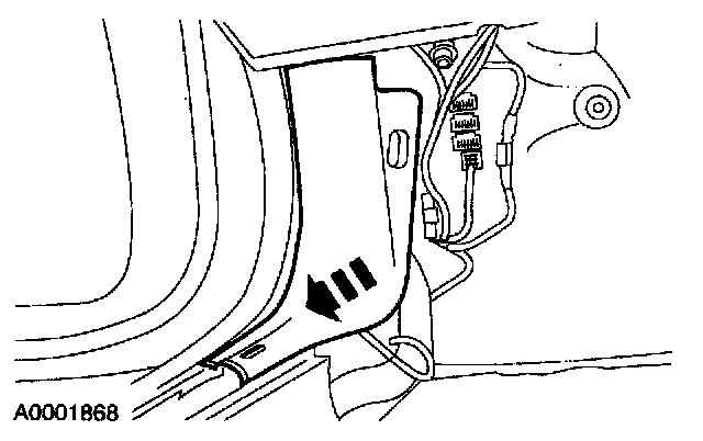 9. Remove the RH A-pillar lower trim panel and position aside the carpet to expose battery cable.