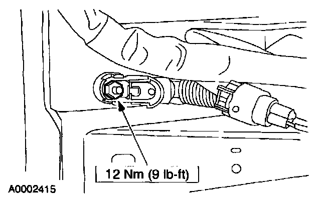 11. Remove the cable attachment cover and the nut at the dash through-bolt and remove the cable.