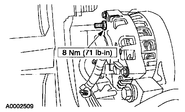 3. Relieve the accessory drive belt tension and move the belt off the generator pulley. For additional information, refer to Drive Belts, Mounts Brackets and Accessories.