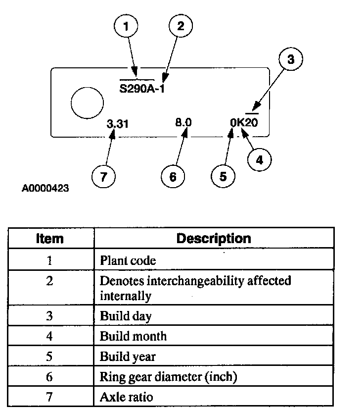 The plant code denotes a particular axle design and specific ratio. In addition, the plant code will not change as long as that particular axle assembly never undergoes an external design modification. If, however, an internal design modification takes place during the production life of the axle and that internal modification affects parts interchangeability, a dash and numerical suffix is added to the plant code. This means that, as an assembly, both axles are interchangeable; however, internally they are different. Therefore, each requires different internal parts at the time of repair.